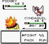 Битва в игре. Покемон игрока (снизу) сражается с покемоном противника (сверху)