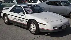В 1984 году Fiero был выбран официальным пейс-каром гонки 500 миль Индианаполиса, в честь этого события была выпущена ограниченная серия из 2000 машин в комплектации Indy Pace Car, отличавшихся оформлением переднего и заднего бамперов, юбками и наличием спойлера. При этом пейс-кар обладал рядом деталей которые так и не стали доступны покупателям ограниченной серии — рядным четырёхцилиндровым двигателем SD4 SuperDuty 2.7 л. (232 л.с.), оригинальными дисками Center Line (размерности 16x7 спереди, 16x8 сзади), а также воздухозаборником необычной формы. Позже некоторые детали оформления кузова версии Indy стали использоваться в модификациях GT.