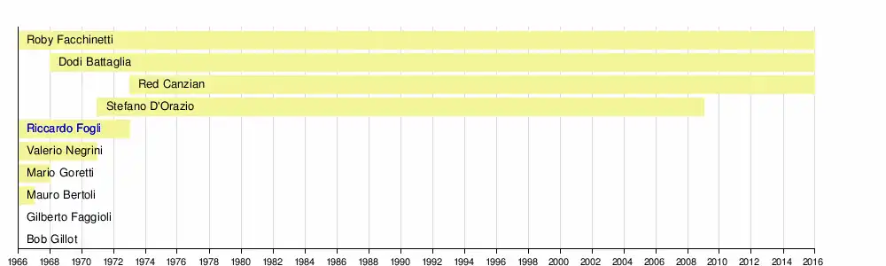 - Риккардо Фольи (итал. Riccardo Fogli) — вокал, гитара, бас-гитара, бубен (1966 — 1973, 2015 — 2016, 2023 — н. в.)