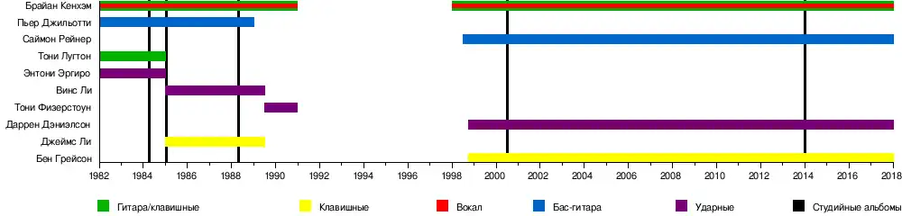 - Брайан Кенхэм — вокал, гитара, клавишные (1982—1990, 1998-наши дни);