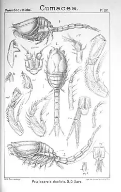 - ↑ Georg Ossian Sars. Nye bidrag til kundskaben om Middelhavets Invertebratfauna. II. Middelhavets Cumaceer (норв.) // Archiv for Mathematik og Naturvidenskab. — 1878. — Т. 3. — С. 416—512, pls 1—18.