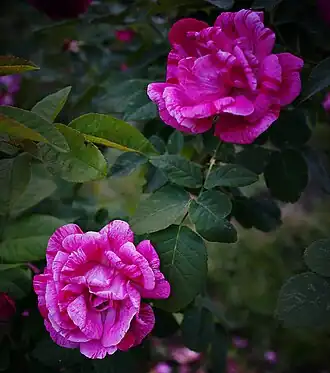 Очевидно имеют общих предков с сортом 'Commandant Beaurepaire'[5].