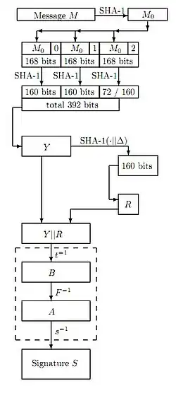 5) Сравниваем получившиеся строки Y и Y'. Если они равны, то подпись принимается, в противном случае — отклоняется.