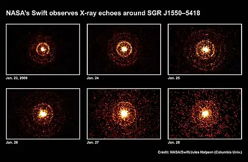 - ↑ SIMBAD (англ.). — SGR J1550-5418 в базе данных SIMBAD. Дата обращения: 5 января 2018.