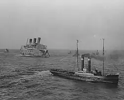 Пожар повредил листы обшивки. К полудню лайнер имел крен 20 градусов на левый борт[4]. Он дрейфовал на северо-восток и к 5 января оказалось в 3 милях от острова Портленд (Великобритания). Девять буксиров взяли все ещё горящее судно на буксир и повели в Шербур. Это заняло 30 часов, а некоторые буксиры получили повреждения[9].