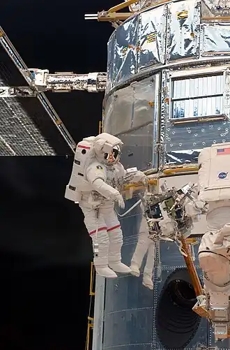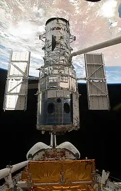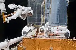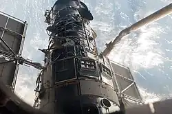 На телескопе был установлен захват, к которому в будущем, когда телескоп Хаббл окончательно выйдет из строя, будет подсоединён спутник, который спустит телескоп с орбиты.