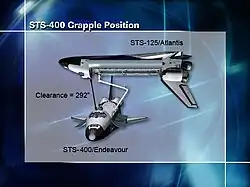 При сближении «Индевора» и «Атлантиса» в космосе «Атлантис» располагался бы днищем (вверх) в сторону открытого космоса и с раскрытым грузовым отсеком к земле. «Индевор» же располагался бы днищем к земле и подходил бы к «Атлантису» снизу. После сближения на расстояние 13 метров (44 фута), астронавты «Индевора» с помощью робота-манипулятора захватили бы шаттл «Атлантис».