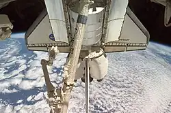 В 18:45 удлинитель с укреплёнными на нём лазерным сканером и высокоразрешающей камерой подсоединён к манипулятору шаттла.