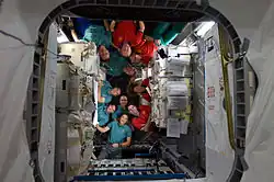 Через три часа после стыковки астронавты начинают переноску в станцию оборудования и материалов, доставленных в шаттле.