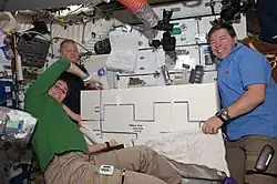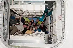 Астронавты заканчивали разгружать и оборудовать новый модуль станции — герметичный многофункциональный модуль, а также заканчивали ремонт системы очистки воздуха от углекислого газа и генератора кислорода.
