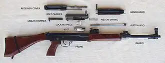 Автомат отличается высоким качеством изготовления[11]. Ствольная коробка фрезерована. Крышка затвора выпрессована из листовой стали. Имеется хромирование затвора, газовых тяг и канала ствола, а также фосфатирование внешних поверхностей всех деталей, которые также для защиты от коррозии покрыты специальным лаком. Приклад, пистолетная рукоятка и цевьё выполнены из дерева (ранние образцы), либо из пластика с наполнением из деревянных опилок (поздние образцы)[11]. К автомату может крепиться штык-нож, а также (для некоторых образцов) сошки и подствольный гранатомёт.