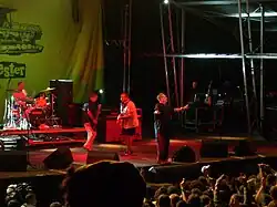![]() Sex Pistols во время турне по США (1978) Слева направо: Сид Вишес, Стив Джонс, Пол Кук, Джон Лайдон. | |