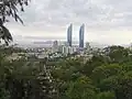 - 59-этажная башня A (250 м) занята офисами, квартирами и гостиничными номерами пятизвёздочного отеля Conrad[4][5][6].