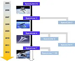 В настоящее время SpaceLiner находится в стадии предварительного проектирования (эскизного проекта). Работа над эскизным проектом продвигается на основе уже выполненных исследований по мере все более детальной разработки и интеграции подсистем. Параллельно с этим изучаются дополнительные варианты, удовлетворяющие новым требованиям и спецификациям, а результаты исследований этих вариантов также могут быть использованы в процессе общей разработки[3].
