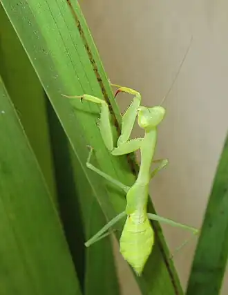 Ярко-зелёные богомолы, достигающие длины тела 65—75 мм[2]. Охотятся за любой добычей подходящего размера — ползающими и летающими насекомыми.