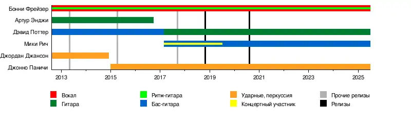 - Бонни Фрейзер — вокал, ритм-гитара (с 2012)