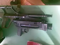 В 1980-х годах было принято решение о расширении функциональных возможностей армейской универсальной винтовки, был разработан набор модулей, позволяющий за счёт замены ствола и затворной группы (установка свободного затвора) преобразовывать её в пистолет-пулемёт, использующий патроны 9×19 мм Парабеллум, для обеспечения совместимости с магазинами под данный патрон устанавливается специальный адаптер-переходник[3][4].