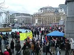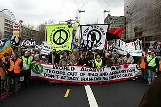 Марш от посольства Соединённых Штатов на Grosvenor Square к Трафальгарской площади 1 апреля 2009 года свел вместе протестующих из Stop the War Coalition, Palestine Solidarity Campaign, British Muslim Initiative и Кампании за ядерное разоружение[15].