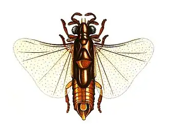 - ↑ Bohart, Richard M. (1941). A revision of the Strepsiptera with special reference to the species of North America, University of California Publications in Entomology, vol. 7, no. 6, 91-160.