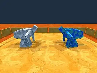 На дохё (площадке для борьбы сумо) находятся два символично отрисованных борца, находящихся в неустойчивом положении равновесия. После сигнала готовности (касания площадки руками) спортсмены начинают сходиться, стараясь так толкнуть соперника, чтобы тот упал. Первый упавший проигрывает раунд, после пяти проигранных раундов, если разрыв между соперниками 2 балла или более, игра заканчивается и объявляется победитель. В противном случае игра продолжается (и может теоретически продолжаться бесконечно) до тех пор, пока разрыв не достигнет двух баллов.