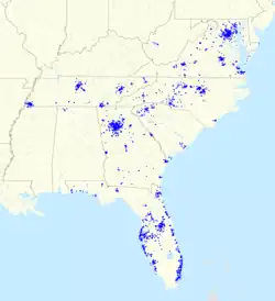 По состоянию на сентябрь 2016 года, SunTrust Bank имеет 1400 банковских отделений и 2160 банкоматов в таких штатах как: Алабама, Арканзас, Флорида, Джорджия, Мэриленд, Миссисипи, Северная Каролина, Южная Каролина, Теннесси, Вирджиния, Западная Вирджиния и Вашингтон, округ Колумбия[2].