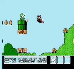 ![]() Обложка игры для NES. Изображён парящий Марио с ушами и хвостом енота — эффект бонуса под названием «Super Leaf». | |