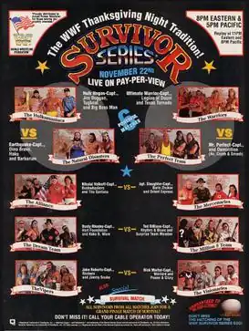 «Визионеры» (Рик Мартел, Варлорд, Геркулес и Пол Рома) (со Сликом) победили «Гадюк» (Джейк Робертс, Джимми Снука, Шон Майклз и Марти Джаннетти) |