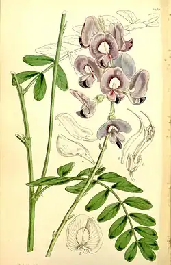 - ↑ Addictive native weed Darling Pea killing hundreds of livestock in western NSW — ABC News (Australian Broadcasting Corporation). Дата обращения: 20 мая 2014. Архивировано 18 мая 2014 года.
