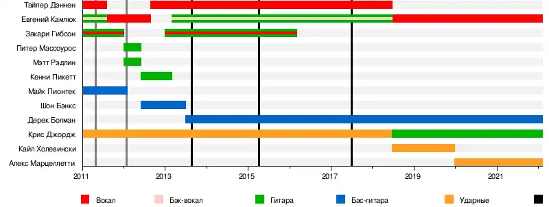 - Тайлер Дэннен — вокал (2011, 2012–2018)