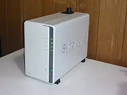 Synology DiskStation представляет собой сетевое устройство хранения данных (NAS). DiskStation — это настольное NAS-устройство, в котором доступно от одного до двенадцати отсеков для дисков. Некоторые модели поддерживают масштабируемость хранилища.