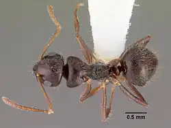 Мелкие земляные муравьи (длина рабочих 3-5 мм) коричневого цвета. Пронотум сильно расширен с латеральными лопастями (ни у одного другого австралийского муравья нет подобной переднегрудки). Заднегрудка выступающая назад с проподеальными шипиками. Усики самок и рабочих 12-члениковые (у самцов антенны состоят из 13 сегментов). Жвалы рабочих с 6 зубцами. Нижнечелюстные щупики 6-члениковые, нижнегубные щупики состоят из 4 сегментов. Голени средних и задних ног с одной апикальной шпорой. Стебелёк между грудкой и брюшком состоит из одного сегмента (петиоль) [3][4][5].