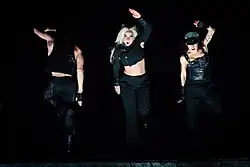 - «Paparazzi» и «Scheiße»: Вместо предыдущего чёрного верха Гага надевала чёрный топ, поверх которого был чёрный пиджак с выраженными плечами.