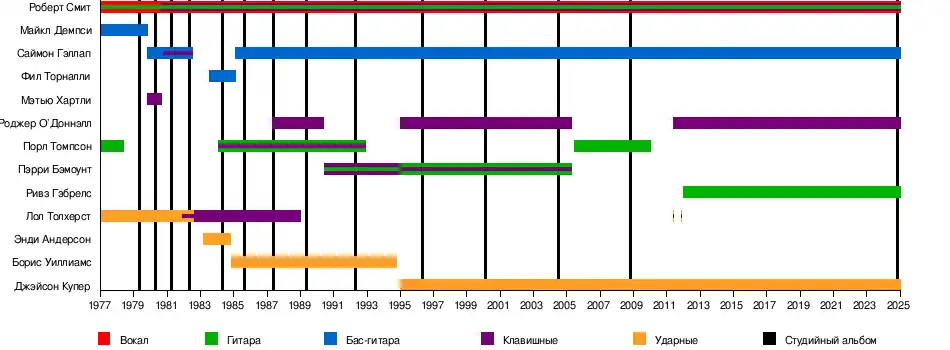 - Роберт Смит — вокал, гитара, клавишные, шестиструнный бас (1976—наши дни)