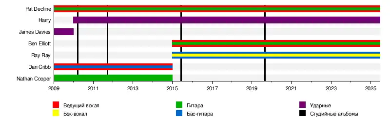 - Dan Cribb[3] — вокал, бас-гитара (2009—2015)