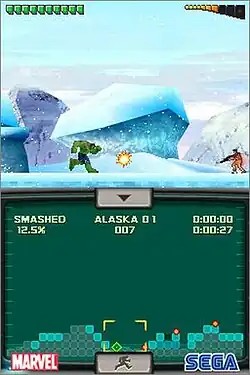 В версии для Nintendo DS игровой процесс остался практически без изменений, однако игра выполнена в жанре платформер с боковым сайд-скроллингом[6][7]. В этой версии игроку предстоит пройти 30 уровней, которые охватывают Аляску, Бразилию и Соединённые Штаты Америки[6]. Кроме того, в данной версии здоровье Халка не регенерирует и его можно пополнить сбором аптечек. Также в ней доступен многопользовательский режим для двух игроков путём соединения двух приставок Nintendo DS с помощью специального кабеля: в нём игроки соревнуются по нанесению как можно большего урона окружению и врагам[8].