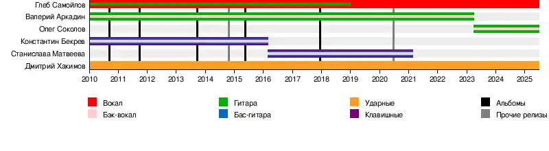 - ↑ Денис Ступников. Глеб Самойлов (экс-«Агата Кристи»): «В новом проекте мы будем играть неопостготику». Дата обращения: 16 апреля 2018. Архивировано 18 июня 2012 года.