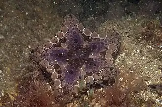 Морская звезда небольшого размера, 20—30 мм в радиусе, может достигать 45 мм. Тело имеет пять лучей. Верхняя поверхность тела зеленовато-коричневая с вкраплением других цветов, нижняя поверхность, как правило, кремового или тёмно-серого оттенка[2].