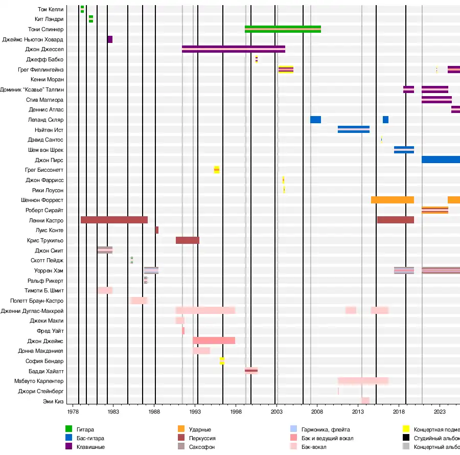 Временные шкалыВременная шкала участников группы![]() Временная шкала концертных музыкантов![]() ДискографияСтудийные альбомы