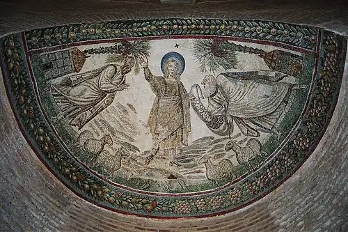 - Добрый Пастырь (популярный мотив в раннехристианской иконографии)