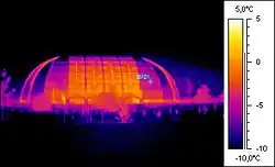 Высокий расход энергии является отрицательным экономическим и экологическим фактором. Оболочка рассчитана на поддержание температуры от 19 °C, в области саун поддерживается температура 26 °C. Из-за большой площади поверхности и покрытия, пропускающего ультрафиолетовые лучи, возникают большие потери тепла. Термографическое изображение показывает потери тепла в разных районах зала.