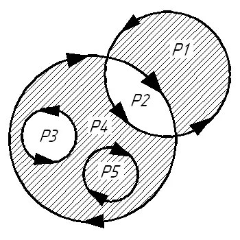 - двумя внешними контурами может быть сформирован внутренний: если обход точек двух контуров совпадает, то эта область закрашивается, если не совпадает, то не закрашивается (рисунок 7).