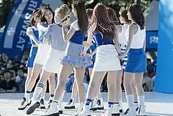 ![]() Twice в феврале 2022 года. Слева направо: Чхэён, Мина, Сана, Момо, Чонён, Чихё, Наён, Дахён и Цзыюй. | |