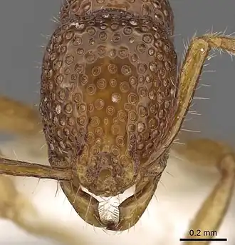 Мелкие (около 3 мм) светло-коричневые или оранжево-жёлтые муравьи. Мандибулы с двумя зубцами на жевательном крае (апикальный и мелкий субапикальный); на базальном крае жвал зубцы отсутствуют. Внутренний вентральный край жевательной поверхности мандибул покрыт щетинками. Глаза мелкие, остаточные (состоят из нескольких фасеток). Усики 11-члениковые с 3-сегментной булавой. Нижнечелюстные и нижнегубные щупики редуцированные, состоят из двух сегментов (формула щупиков: 2,2). Лобные валики и усиковые бороздки на голове отсутствуют. Грудь почти без швов, сверху округлая. Проподеальные шипики мелкие, треугольные. Голова и грудь покрыты мелкими ямками-пунктурами; бороздки и морщинки отсутствуют. Жало развито, относительно крупное. Отсутствуют метаплевральные железы (у всех исследованных видов нет выходных отверстий этих характерных для абсолютного большинства муравьёв защитных желёз на заднегрудке)[1][5].
