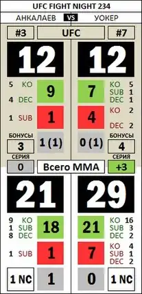 - ↑ UFC Fight Night 234 results: Magomed Ankalaev floors Johnny Walker, makes case for title shot (амер. англ.). MMA Junkie (14 января 2024). Дата обращения: 14 января 2024. Архивировано 27 января 2024 года.