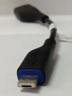В некоторые из первых мобильных устройств встраивали громоздкий разъём USB-B[9]. Но чаще разработчики шли на нарушение стандарта, встраивая туда несколько более компактный USB-A[9], или придумывали свой разъём. Со стандартом USB 2.0 специально для мобильных устройств появились разъёмы USB Mini-A и USB Mini-B, позднее появилась спецификация USB OTG. В 2007 году появились разъёмы USB Micro-A и USB Micro-B, вдвое тоньше USB Mini- и более надёжные[9]. Ещё один недостаток USB Mini-USB — устройства фиксации были в периферии, а не в кабеле, и при поломке приходилось ремонтировать устройство, а не менять дешёвый кабель[9]. В 2009 году в попытках уменьшить количество электронного мусора разъём USB Micro-B объявили основным стандартом зарядных устройств для мобильных телефонов, но меморандум так полностью и не был реализован — Apple просто сделала переходник с USB Micro-B на свой разъём.