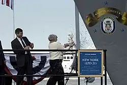 Корабль окрестили 1 марта 2008 года на заводе Эвондейбл в Новом Орлеане. Дотти Ингланд, крёстная мать корабля, по-традиции разбила бутылку шампанского о нос корабля. Присутствовали и некоторые чиновники, среди них Уильям Джеферсон (конгрессмен Штата Луизиана), Заместитель министра обороны США Гордон Ингланд, члены Нью-Йоркского полицейского департамента и Нью-Йоркского департамента пожарной охраны, а также члены семей жертв атаки 11 сентября. При первом ударе о корпус бутылку разбить не удалось, но при второй попытке бутылка была разбита полностью.