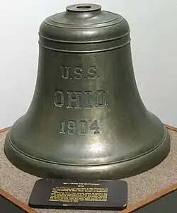 Огайо был заложен на верфи в Union Iron Works в Сан-Франциско 22 апреля 1899 года. Корабль был спущен на воду, в присутствии Президента, США и Уильяма Маккинли 18 мая 1901 крестной матерью корабля стала мисс Хелен Дешлер, родственница губернатора штата Огайо Джорджа К. Нэша. Огайо вступил в строй 4 октября 1904, командование принял капитан Ливитт К. Логан.