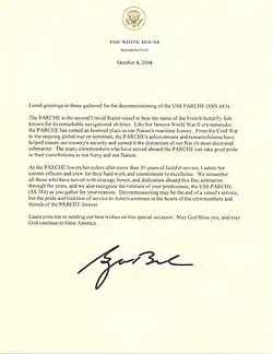 19 октября 2004 года на военно-морской верфи Пьюджет-Саунд (Бремертон, штат Вашингтон) прошла церемония по выводу «Парче» из состава флота. Официально субмарина была выведена из состава флота 18 июля 2005 года, и в этот же день удалена из Регистра судов ВМФ США. Утилизация лодки проходила там же, на военно-морской верфи Пьюджет-Саунд, (Бремертон, штат Вашингтон) в рамках программы по утилизации кораблей и подводных лодок ВМФ США. Утилизация окончательно была завершена 30 ноября 2006 года. Однако отдавая дань уважения самой титулованой подводной лодке США рубка «Парче» была сохранена и выставлена в качестве экспоната в Военно-морском музее города Бремертон (штат Вашингтон).