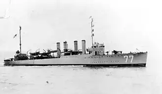 Утром 26 февраля 1921 года, неподалёку от острова Койба, эсминец столкнулся с транспортным судном SS Steel Inventor и затонул. 17 членов команды получили ранения, 1 погиб, а 15 пропало без вести. Сто выживших при крушении моряков были подобраны эсминцем Aaron Ward.