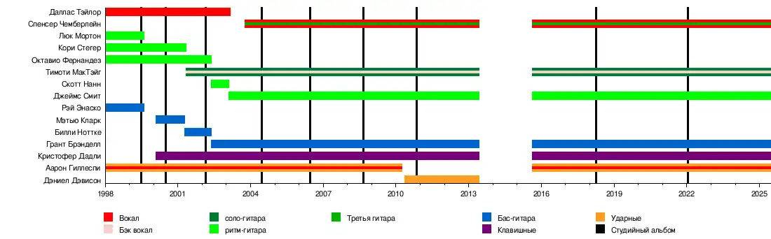 - Аарон Гиллеспи — барабаны, вокал (1997—2010, 2015 — н.в.)